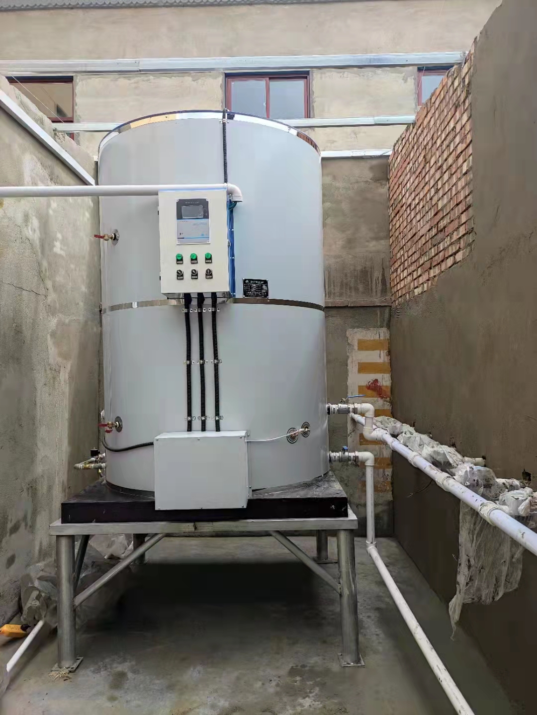 2021年8月7日,訂購一臺36千瓦2噸電開水鍋爐,新整的鍋爐房,等電開水爐安裝調試好再封房頂!